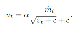 When loss change suddenly, $\hat{m}_{t}$ is updated more aggressively than $\hat{v}_{t}$ and that makes $\hat{u}_{t}$ instability. This simple solution is increasing 𝜖