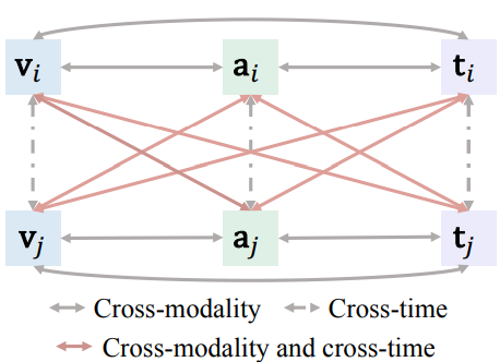 Modality-Temporal feature fusion with self-attention: 1. cross-modality attention 2. cross-time attention 3. cross-modality and cross-time attention
