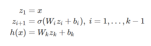 각 annotation이 다음과 같을 때 i+1번째 layer의 latent vector의 값은 이전인 i번째 latent vector가 W_i를 통과하여 bias b_i를 더해준 뒤 activation function을 거쳐 nonlinearity를 확보한 형태라고 할 수 있을 것이다.