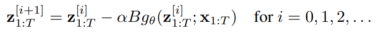 B는 z^i에서의 Jacobian inverse 혹은 Jacobian inverse의 row-rank approximation이고 alpha는 step size이다. 하지만 일반적으로 초기 z^0가 주어진다면 이런 방식이 아닌 black-box root finding algorithm을 사용하여 forward pass에서 equilibrium point를 찾을 수 있다.