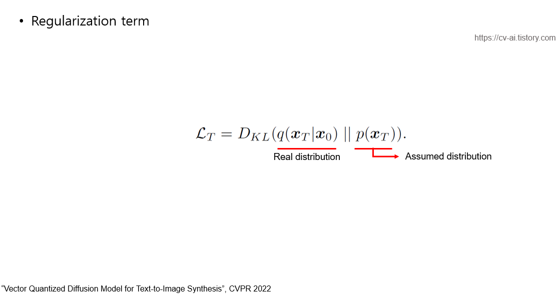 diffusion process가 성립하려면 우리가 가정한 분포(gaussian, uniform등) 가 성립해야 하므로 network의 output인 p(x_t)가 실제 x_0가 주어졌을 때 x_t의 분포와 같게 맞추어주는 term입니다.