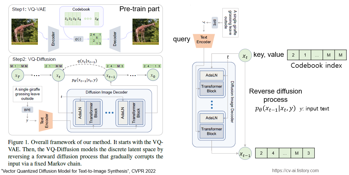지금 까지 나온 본논문의 VQ-diffusion의 흐름은 다음과 같습니다.
